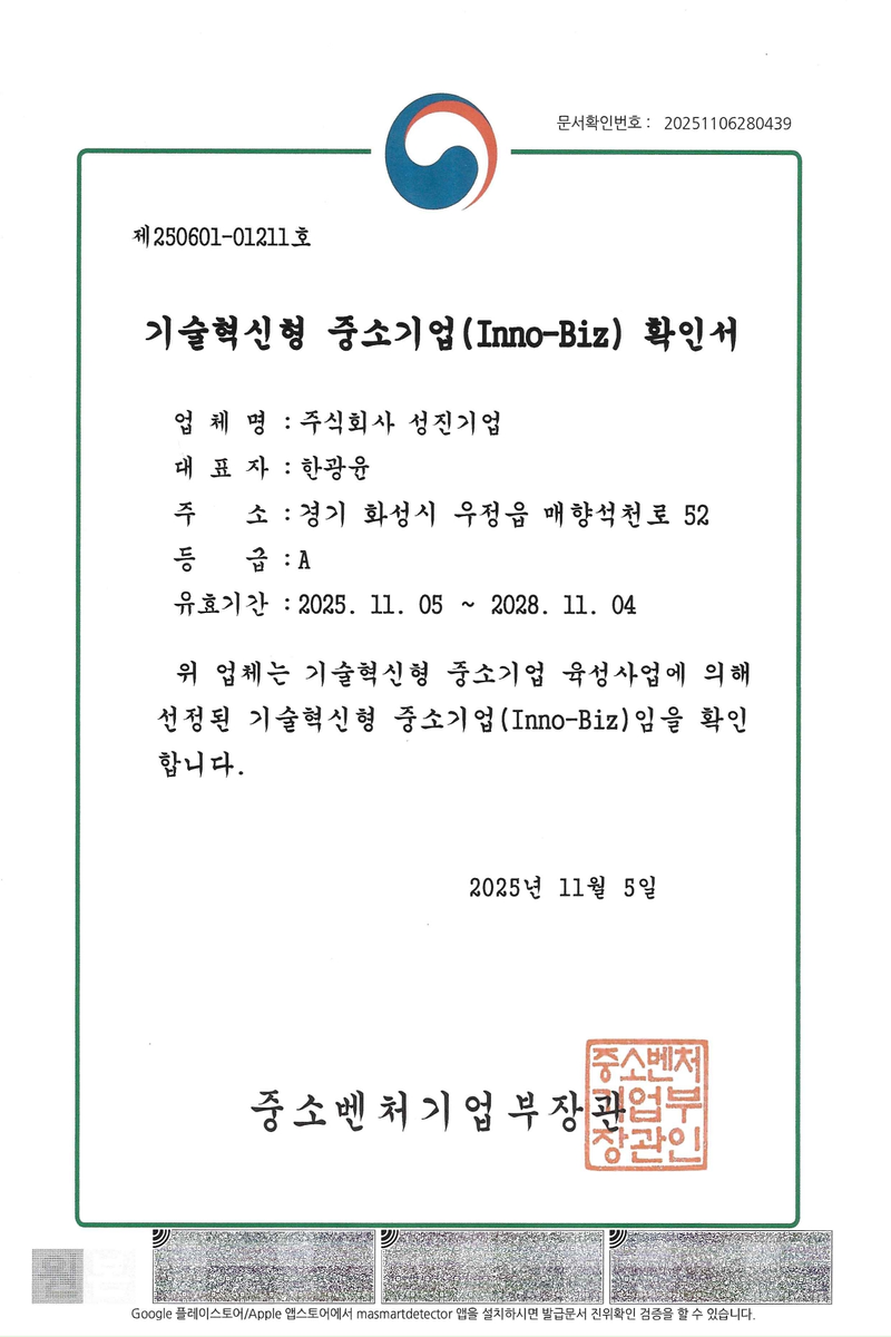 - 2025년 기술혁신형 중소기업(Inno-BiZ) 확인서 획득